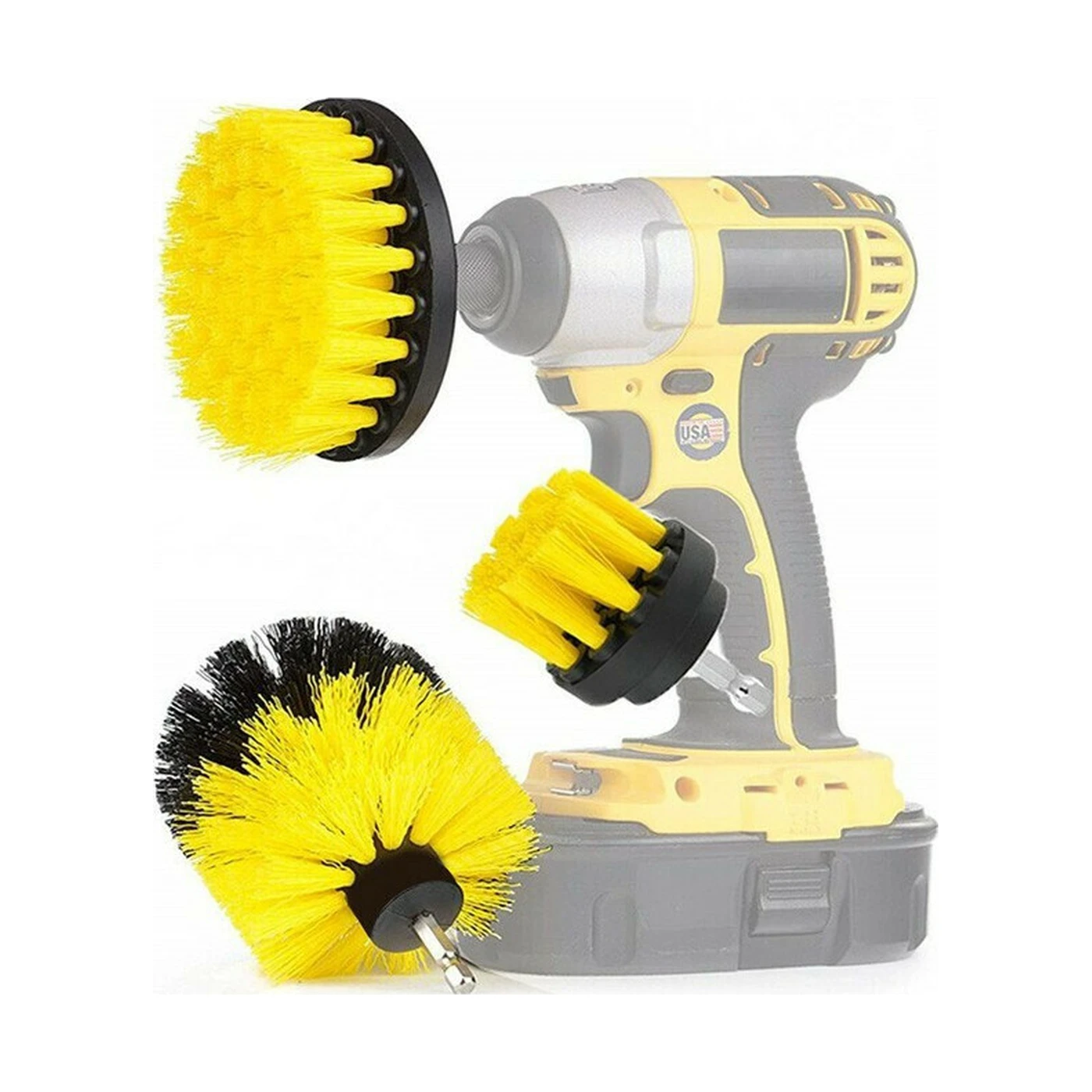 Περιστρεφόμενες βούρτσες καθαρισμού 3 τεμαχίων, οι οποίες συνδέονται με ασύρματο τρυπάνι για βαθύ καθαρισμό διάφορων επιφανειών. Μπορούν να χρησιμοποιηθούν σε μπανιέρες, νεροχύτες, σανίδες και ντουζιέρες. Οι τρίχες είναι κατασκευασμένες από νάιλον ώστε να μην χαράζουν τις επιφάνειες.